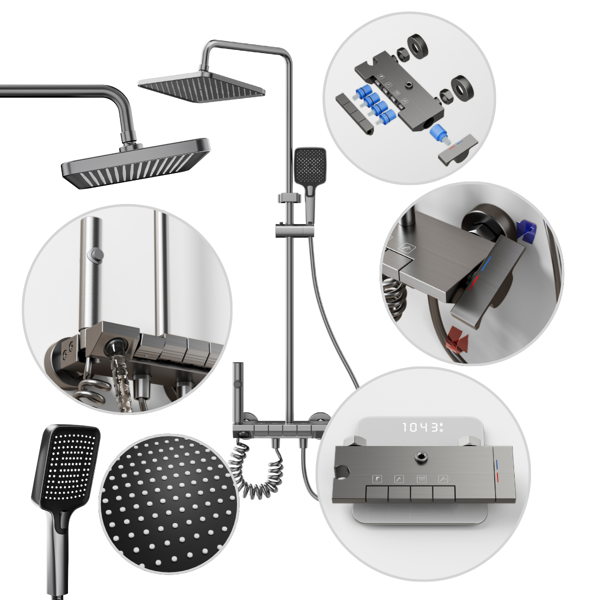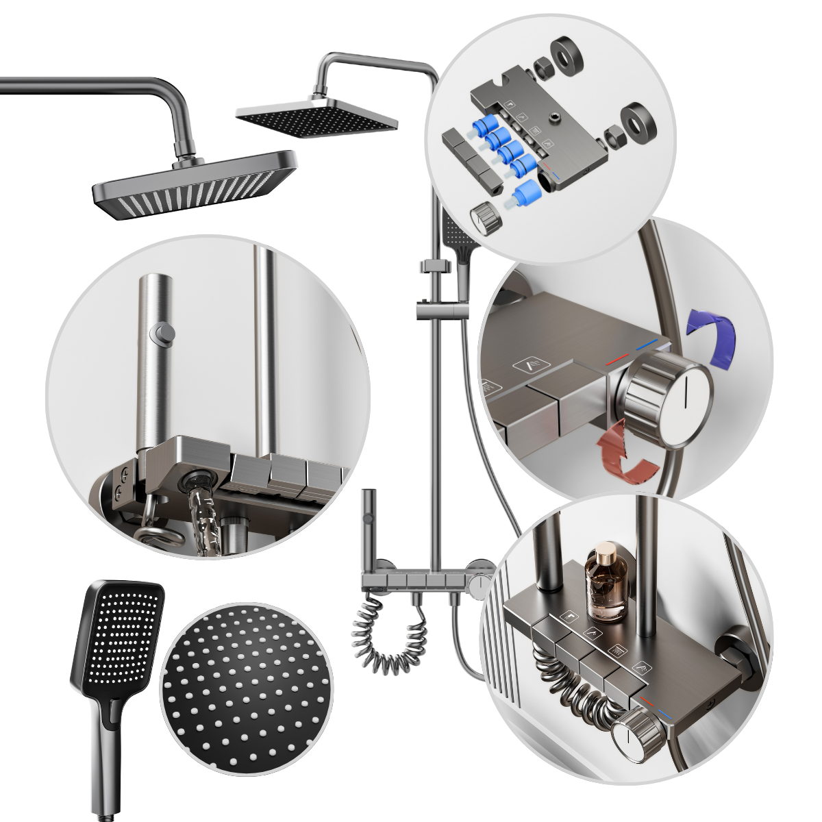 Nowoczesny zestaw Prysznicowy Kolumna Natryskowy Deszczownica, REGULOWANY