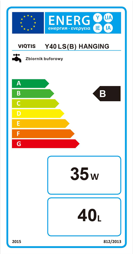 Urządzenie posiada klasę efektywności energetycznej B – jest to najwyższa możliwa klasa dla zbiorników tej pojemności, potwierdzona testami w certyfikowanych laboratoriach europejskich.
