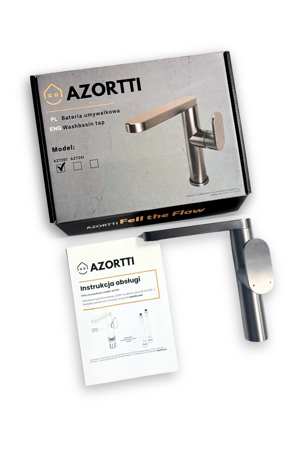 Bateria Umywalkowa grafit szczotkowany Nablatowa Stojąca Kran