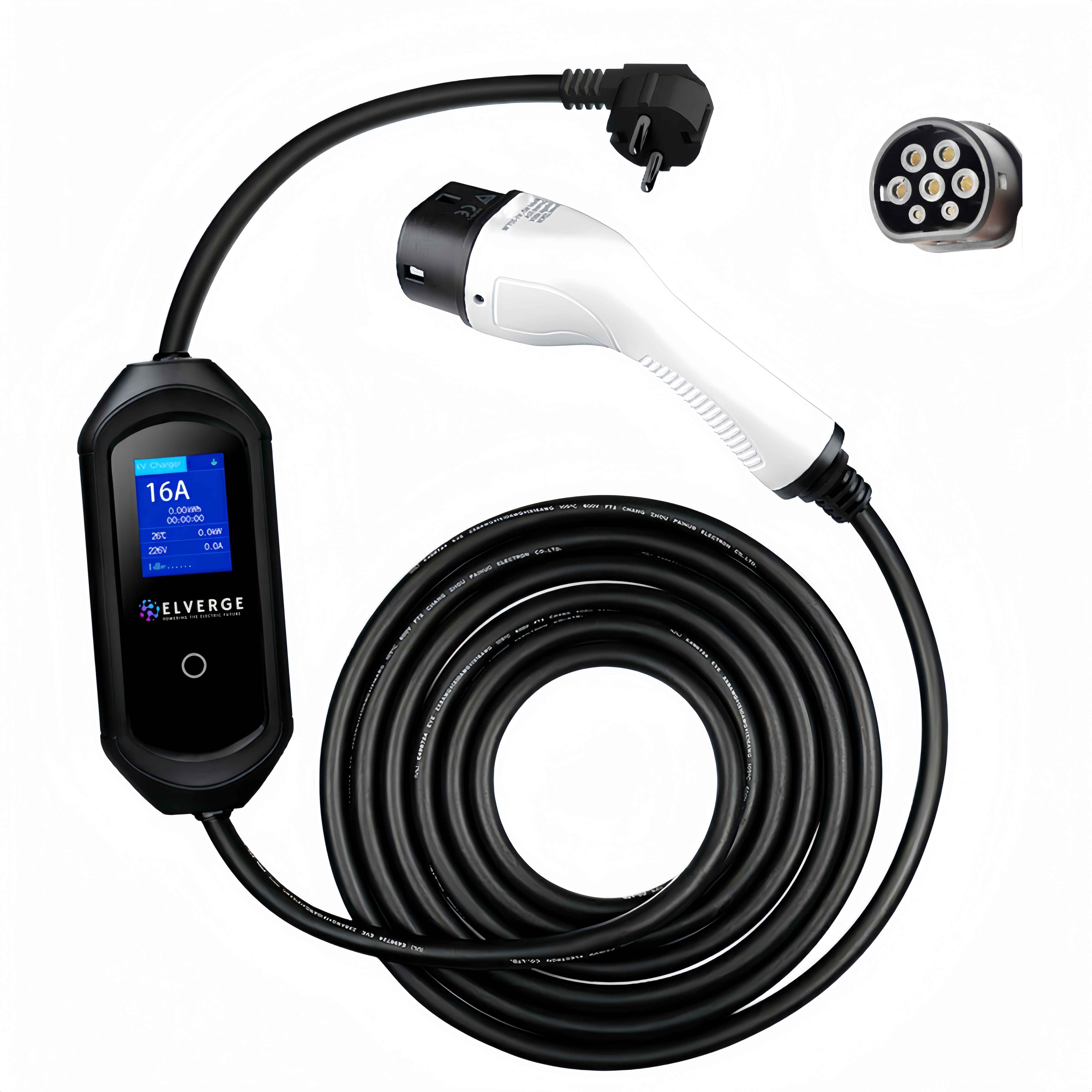 Przenośna ładowarka ELVERGE 3,5 kW przeznaczona jest do ładowania samochodów elektrycznych (BEV) oraz hybryd plug-in (PHEV) wyposażonych w złącze Type 2 (standard europejski IEC 62196-2).