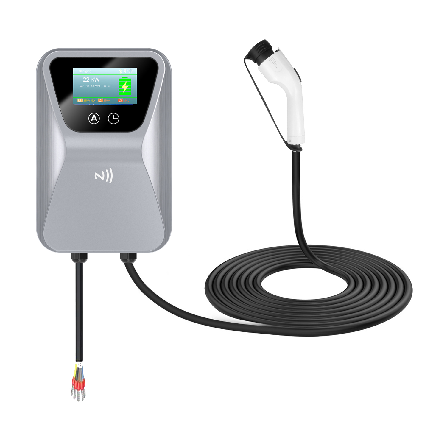 Wallbox ELVERGE 22 kW to trójfazowa ładowarka ścienna przeznaczona do ładowania samochodów elektrycznych (BEV) oraz hybryd plug-in (PHEV) wyposażonych w złącze Type 2 (IEC 62196-2).